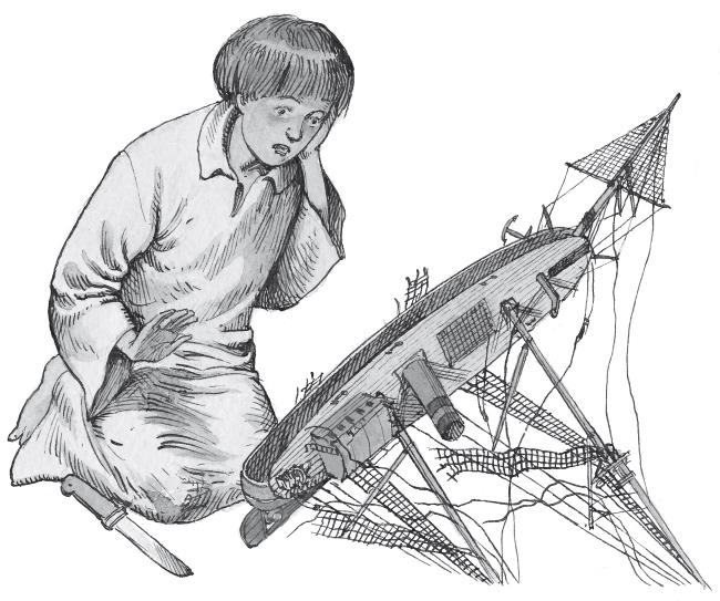 У меня руки дрожали, когда я прилаживал назад палубу. Всё криво становилось. И лесенки никак не приделать. Они болтались как попало. Я кое-как приткнул палубу на место и поставил пароходик на полку. Теперь всё пропало!