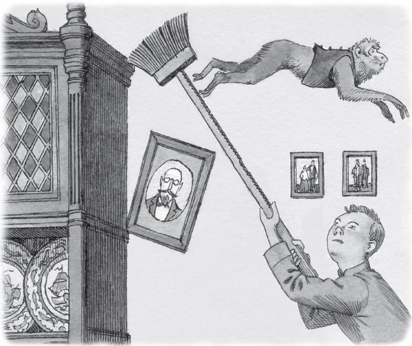 И я начал ловить Яшку. Я к буфету – он на печь. Я его оттуда щёткой – он прыг на часы. Качнулись часы и стали. А Яшка уже на занавесках качается. Оттуда на картину, картина покосилась, – я боялся, что Яшка кинется на висячую лампу.