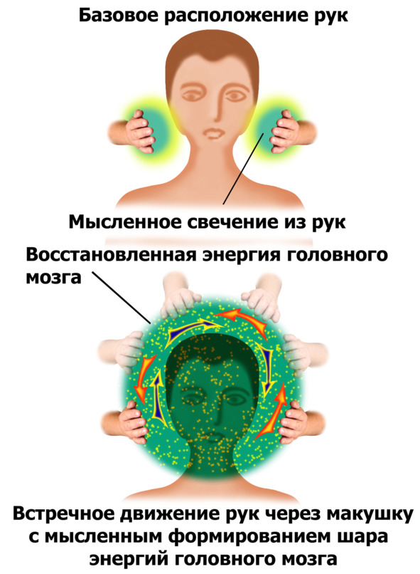 Так как лечит не целитель, а посылаемые им энергии, то поток энергий из наших ладоней, сканируя энергетические каналы взаимодействия полушарий, и натыкаясь на всевозможные энергетические блоки, созданные нами в этой, или прошлых жизнях, осветляет их, тем самым освобождая энергетическое взаимодействие полушарий от паразитических искажений и воздействия. Естественно, что такие блоки часто создаются нашим же негативным мышлением по разным поводам, избежать которого в нашей современной жизни большинству людей сложно, а подчас и невозможно. Но мир устроен так, что если негативное мышление имеет место быть, то происходит образование таких энергетических блоков, затрудняющих работу мозга. Конечно, в подробностях понять данное обстоятельство не представляется возможным, но примерно это выглядит так. Поэтому двигаем свои ладони встречно через макушку так, чтобы достичь противоположного уха ориентировочно за одну минуту, и в течение следующей минуты возвращаем ладони в исходное состояние. Эту манипуляцию мы проделываем два – три раза и переходим к точечной работе.