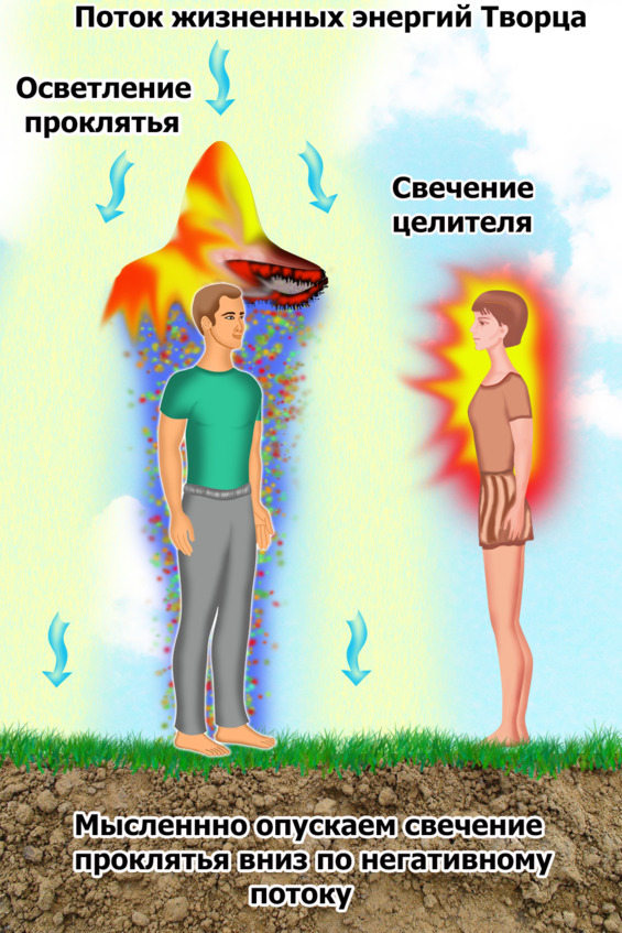 После этого мысленно раскаляем представленное проклятье и поддерживаем его светимость около одной минуты. После проведённого осветления представляем на человеке очередное проклятье и повторяем данную процедуру с ним. За один сеанс желательно проделать не менее пяти процедур, после чего перейти к работе с порчами.