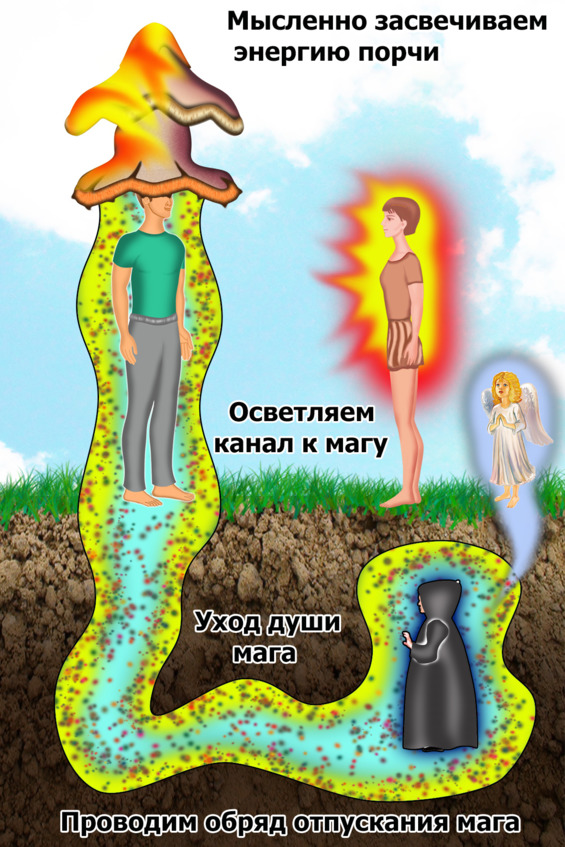 После этого нам необходимо отпустить мага и осветлить тот канал, который он создал, и по которому подпитывалась энергия порчи. Чтобы это случилось, мы обращаемся к Творцу: