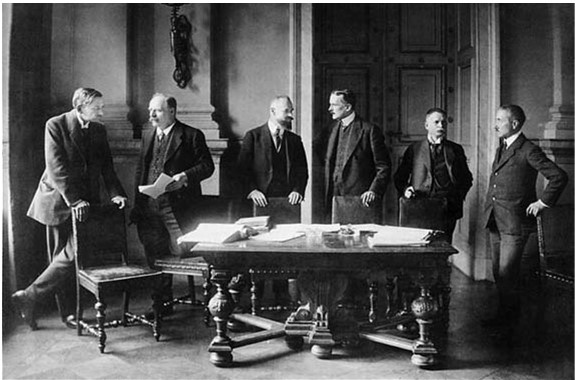 Немецкая делегация в Париже. Глава делегации Брокдорф-Ранцау – четвертый слева