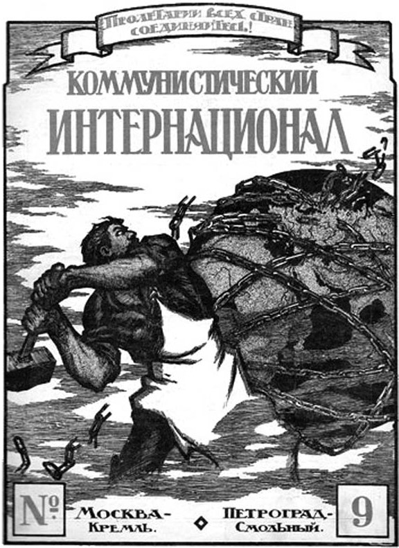 Обложка международного журнала «Коминтерн», печатавшегося на многих языках. Коминтерн был основан весной 1919 года в Москве в самый разгар работы Парижской конференции. Эта организация сразу стала главным врагом Запада