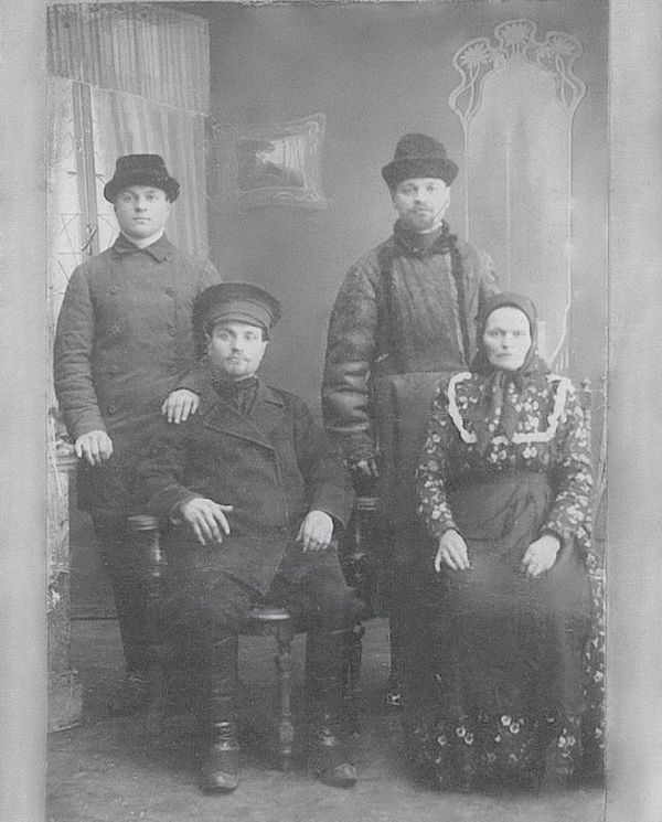 На фотографии дед Антон с отцом, который важно сидел рядом с женой, словно появился прямо из купеческих персонажей Островского, рядом старший брат, модник деревенский, а младшую сестру Пелагею, видимо, сочли недостойной для фотографирования. А, может, фотограф за каждую личность брал отдельную плату?