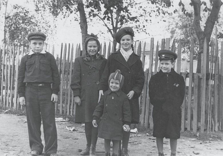 В шляпке Аллочка, выше сестры Томы, Тома в капоре. У меня лицо абсолютного недотепы. Таким всегда был подростком