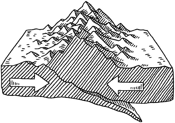 Схема образования гор при столкновении плит