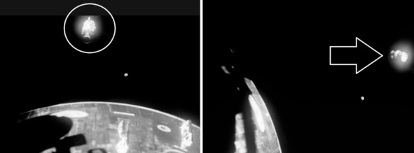 Джек отметил фотографию НАСА AS14-66-9306 и сделал свой комментарий к этому изображению: «Lunar sun shines through solid objects»: Лунное солнце светит сквозь твердые объекты. Может ли лунное «Солнце» светить сквозь твердые предметы – восклицал Вайт. Видимо, он имел ввиду образование ореола вокруг изображения какого-то источника света, который американцы называли «Солнцем» и хорошую освещенность теневой стороны «ЛМ».
