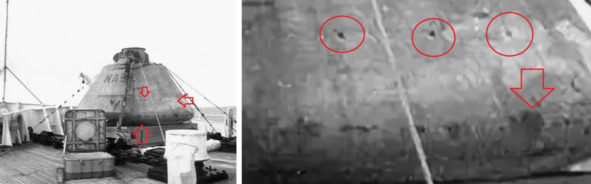 Если бы такие пятна были следствием процесса многочисленных сканирований, или дефектами изображения, то они бы затрагивали, искажали изображение «лунного грунта», «лунных гор» и «кратеров». Но этого в американских фальшивках не наблюдается. Как на изображениях, которые не имеют заметных проявлений подобного рода, без корректировки яркости, так и на фотографиях НАСА, где световые пятна на черном «небе» видны невооруженным глазом, эти явления наблюдаются только в верхней части и не затрагивают американскую «Луну». Джек в большинстве случаев не может указать причину обнаруженных им аномальных явлениях на фотографиях НАСА.
