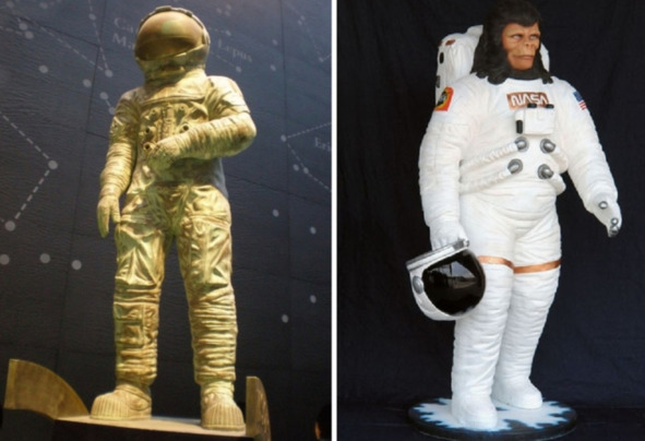 Эти манекены можно увидеть в известном американском музее. Они имеют высоту, приблизительно 145—160 сантиметров. Нет никаких сомнений, что подобные куклы были созданы в структуре НАСА. Для какой цели они были созданы, посетителям музея не разъясняют. Леонид Коновалов в своей публикации представил интересные фотографии указанных манекенов. [23] Маловероятно, что такие куклы были специально изготовлены для экспозиции в музее. Но вполне допустимо, что эти манекены были изготовлены для НАСА в период осуществления «лунного» шоу «Аполлон-11», в конце 60-х годов.