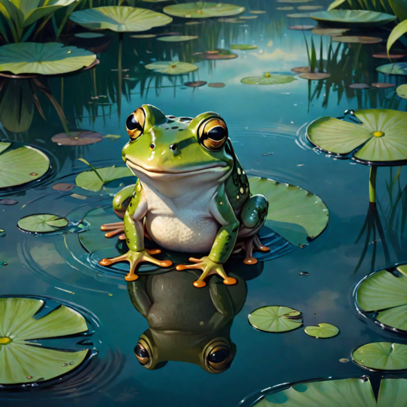 Лягушонок любил часами сидеть на листе кувшинки и играть с водой. Он опускал свою зелёную лапку в воду, и раздавался шлепок. «Шлёп, шлёп, шлёп», – слышали все вокруг, поэтому и прозвали малыша Шлёпиком.