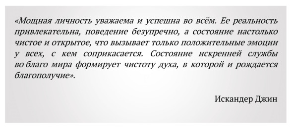 Я встречал очень много успешных, счастливых людей, которые только благодаря своему характеру и своей личности получили тот уровень счастья и благополучия, которым обладают. Среди них есть люди богатые, есть люди среднего достатка, есть люди известные, есть не особо популярные, которые просто живут размеренной, спокойной, стабильной и благополучной жизнью. Просматривая их путь достижений, я обнаружил, что всё строится на личности, на основании внутренних состояний и ощущений, когда характер представляет собой осознанный открытый миру кристальный шарик, который всегда находится в положительном настроении. Иногда, конечно же, происходят прыжки в другие состояния, но в основе своей он находится в позитиве и гармонии.