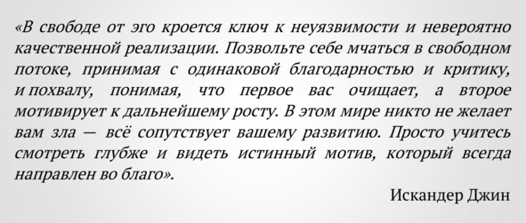 Я уверен, что у каждого из вас хоть раз в жизни было такое, что в ваш адрес возникла какая-то критика. Вам в этой ситуации стало неприятно, и вы начали воевать. Борьба с критикой – глухое и бесполезное дело, потому что вы просто теряете свою энергию, растрачиваете весь свой потенциал и возможности и по факту ничего не получаете в своей жизни. Критика – это лекарство для вашей души. Здесь есть, конечно, свои крайности. Например, если возникает ситуация, в которой к вам подбегают люди и начинают вас мутузить, конечно же, нужно защищаться. Никто не говорит о том, что нужно уподобляться Иисусу Христу и подставлять вторую щеку, чтобы капитально отхватить.