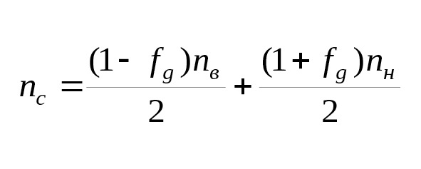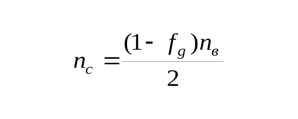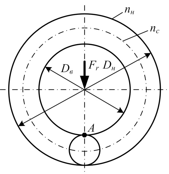 где nв, nн и nс – частоты вращения соответственно внутреннего кольца, внешнего кольца и сепаратора; Dн и Dв – диаметры окружностей расположения точек контактов тел качения соответственно на внешнем и внутреннем кольцах.