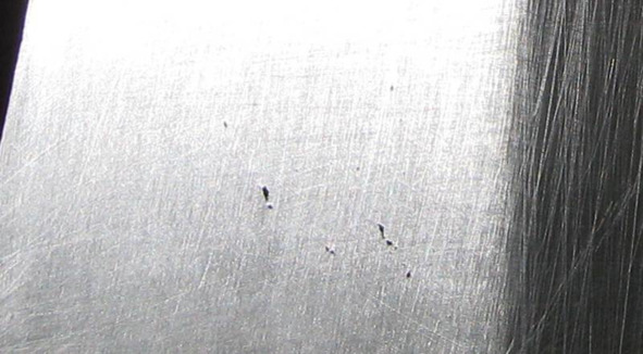 Внешний осмотр подшипников качения проводят при освещенности не менее 1000 лк. Не допускаются к сборке и дальнейшему контролю подшипники, имеющие коррозию и ожоги на рабочих и установочных поверхностях и телах качения, трещины, сколы, забоины и другие механические повреждения, чрезмерное провисание сепаратора, деформированный сепаратор, а также сепараторы с дефектной клепкой или сваркой. Например, в результате внешнего осмотра двухрядного роликового подшипника с посадочным диаметром 450 мм зафиксированы раковины на беговых дорожках (рис. 2.1), что послужило основанием для отказа в приемке подшипника.