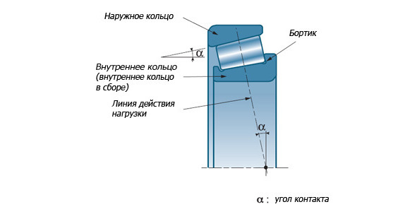 Рис. 1.3. Угол контакта роликоподшипника
