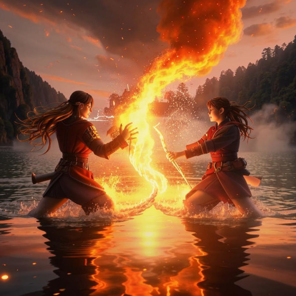 Василиса взмахнула руками на манер дирижёра. Вода в озере просто-напросто выплеснулась из своих берегов, затопив окрестности на несколько километров.