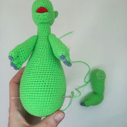 Важно!!! Не пропускайте ни одного основания на хвостике и не одной ножки или ряда на теле при пришивании конечностей.