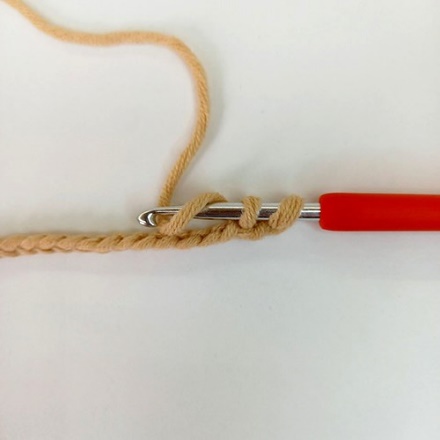 2.Протягиваем рабочую нить через перемычку – 2 петли на крючке (фото 8)