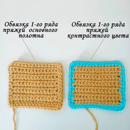 Однако, если для обвязки используется пушистая пряжа, то можно использовать любой цвет. Пушистость скроет все изьяны этого способа придания изделию законченного вида.