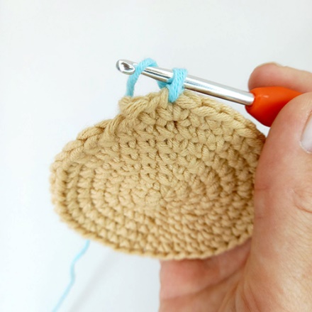 Следующие ряды вяжутся по получившемуся овалу, причем можно вязать, как по спирали, так и используя СС в конце ряда и ВП для подъема, но в этом случае получим некрасивый шов. Итак, в следующих рядах вяжем столбики по одному под каждое из последующих оснований. Затем по овальному сегменту ПР, причем в каждом последующем ряду количество столбиков между прибавками увеличивается на 1.