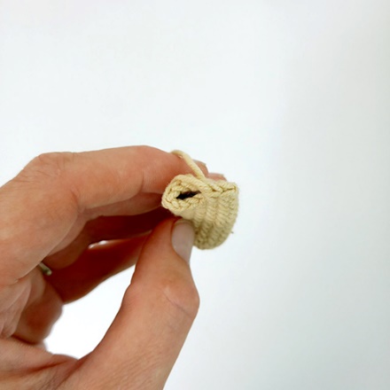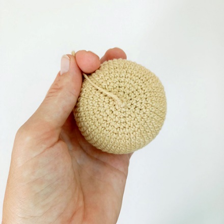 При формировании деталей игрушки, часто вязание заканчивается 6 СБН и остается некрасивое отверстие. Если продолжать делать убавки, то образуется торчащий «пупсик». Поэтому вязание таких деталей лучше всего заканчивать методом стягивания.