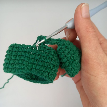 Иногда при вязании некоторых деталей игрушки, например, ножек, ручек, ушек и т.д., необходимо соединить две стороны изделия столбиками без накида.