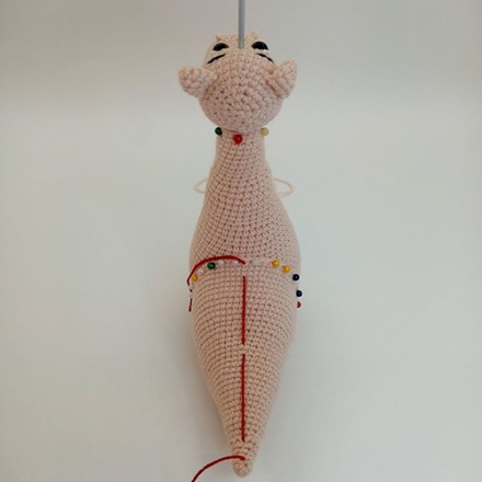 5.Далее все тоже самое, игла вводить под ножку столбика или ряд на теле и под основание столбика на хвостике (фото 4)