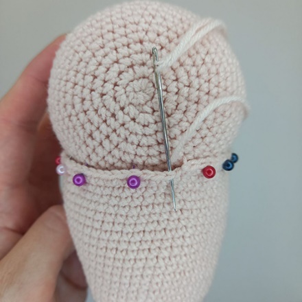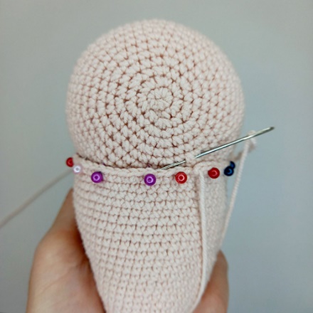 5.Далее пришиваем голову точно так же, как хвостик