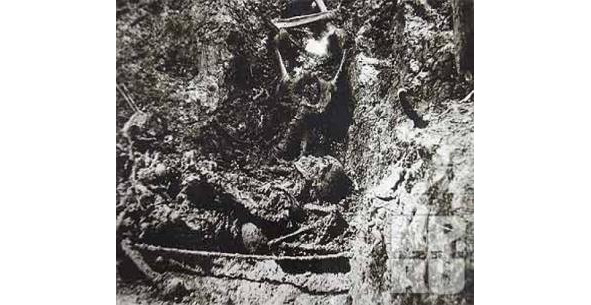 Могилу «первооткрыватели» разрыли. Там, в самом деле, оказались кости (а не девятерых, как считается официально – об этом ниже. – людей, погибших явно насильственной смертью. десятерых Н. В.)
