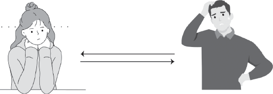 Например, когда другой человек говорит: «У меня сегодня был тяжелый день», – если вы уже слышали эти слова много раз, вам не захочется их снова слышать. Поэтому, сами того не осознавая, вы можете бросить: «Опять двадцать пять?» или «Не у тебя одного». Слова, которые вы произносите автоматически, не задумываясь, становятся частью вашего диалога и ваших отношений. В таком разговоре между стимулом, который дает собеседник, и моей реакцией нет никакого промежутка. Он хорошо показывает структуру бессознательного диалога, когда мы обмениваемся репликами по привычке.