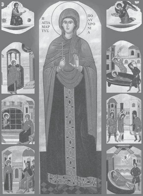 Мученица Полихрония, матушка святого Георгия Победоносца. Греческая икона с Житием
