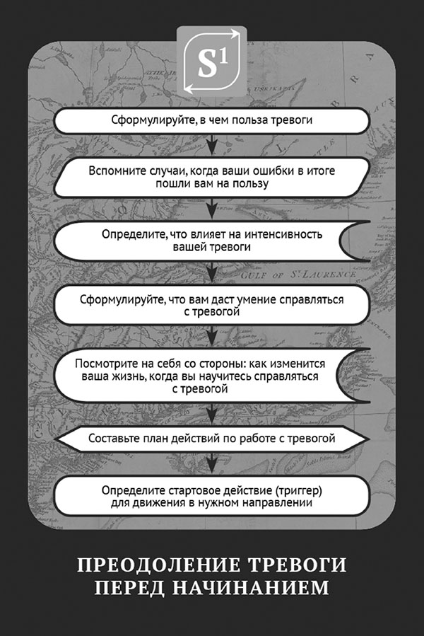 ПРИМЕР. Может быть, это подсказка, что надо хорошо подготовиться, прежде чем начинать какое-либо новое дело? Тогда слабая тревожность говорит о хорошей подготовке, а сильная – свидетельствует об обратном. Уже одна мысль о том, как можно повлиять на свою готовность действовать, обычно снижает опасения. Чем детальнее вы прорабатываете готовность, тем лучше. Это происходит за счет переключения внимания с самого состояния и возможного негативного исхода на ресурсные действия.