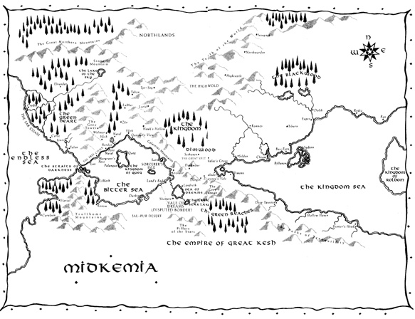 The moredhel – those the lowlanders called the Brotherhood of the Dark Path – had not been seen in these regions since his grandfather’s boyhood, and the trolls usually gave the villages of the Orosini a wide berth. There were no clan feuds currently being fought. The people who lived in the High Reaches to the north-east were currently peaceful and Latagore and the Duchy of Farinda to the south had no issues with the Orosini.