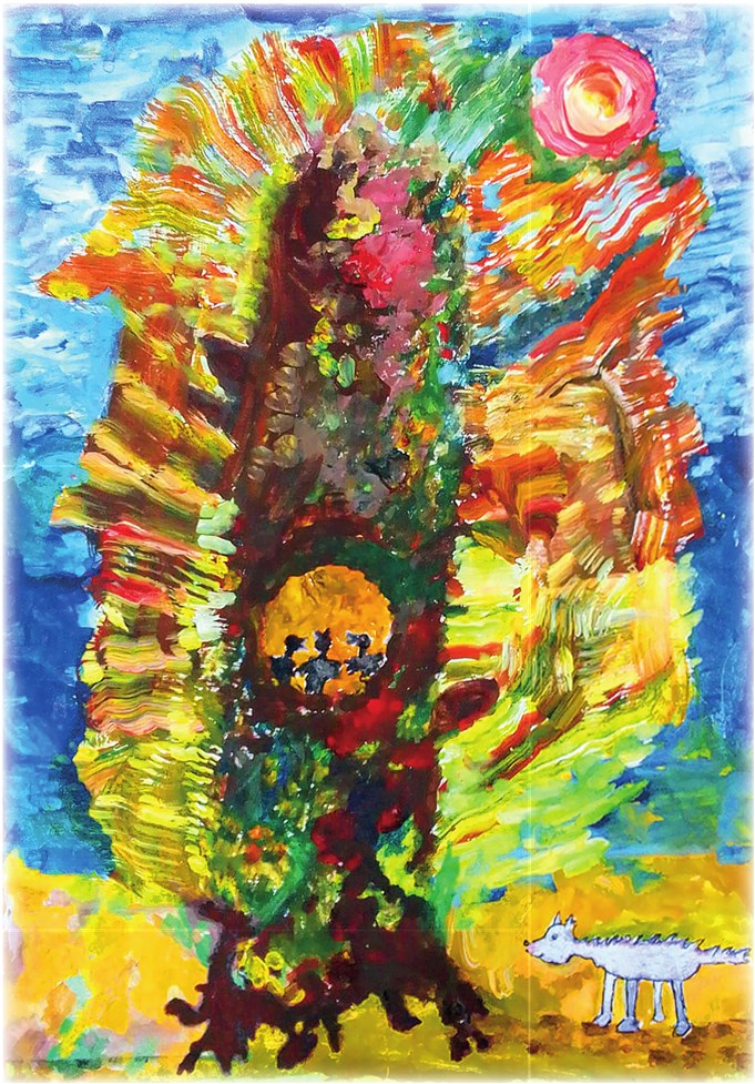 Обиженное кваканье лягушки, шипение гусей, жалобное блеяние козы было для неё сладчайшей музыкой. Потом, покружившись на цветочной поляне, разворошила муравейник, посшибала палкой росу с кустов малины. Довольная собой, заснула под огромным тенистым дубом.