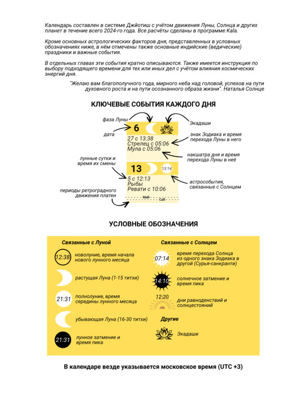 Ниже приводится очень краткое описание каждого фактора, а в отдельной главе – названия и описания созданных мною Лунных календарей для разных сфер жизни, где все факторы, определяющие благоприятность дня, описаны подробно.