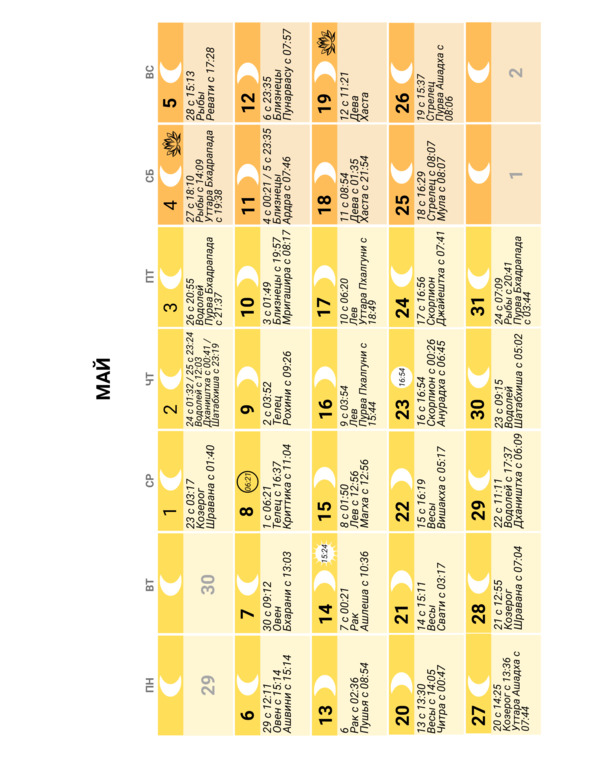 Ритуалы на достаток и всякие благоприятные действия лучше планировать на четверг и пятницу; на получение конкретной суммы денег (прибыли) или покупку-продажу чего-нибудь – в среду, четверг и пятницу. Объявления, реклама и т. п. – в среду.