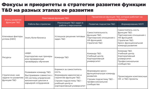 Разобравшись с тем, как последовательно развивать функцию T&D, поговорим о содержании самой стратегии.