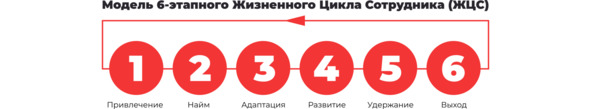 Жизненный цикл сотрудника (ЖЦС) – это модель, позволяющая отслеживать весь путь, который сотрудник проходит в организации. ЖЦС начинается с момента, когда потенциальный сотрудник узнает о бренде, и продолжается до последнего дня его работы в компании. Помимо привлечения и увольнения, ЖЦС учитывает найм и адаптацию, удержание, развитие карьеры в компании.
