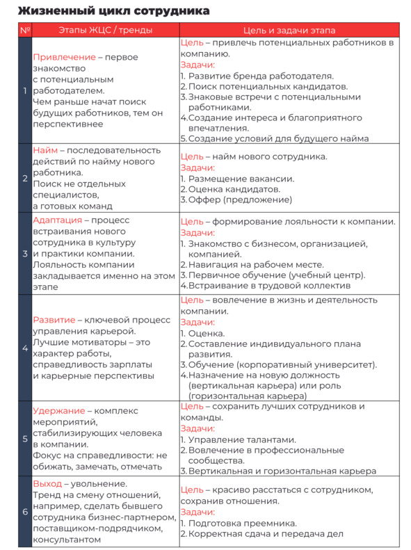 Для того чтобы управлять всем жизненным циклом (ЖЦС) и карьерой сотрудника, нужны как минимум семь направлений работы с персоналом: