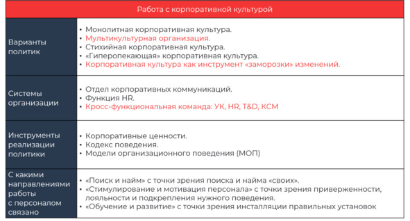 • Управленческая команда является автором корпоративных ценностей (но не культуры, потому что живет в своей субкультуре) и заказчиком всех активностей по работе с корпоративной культурой.
