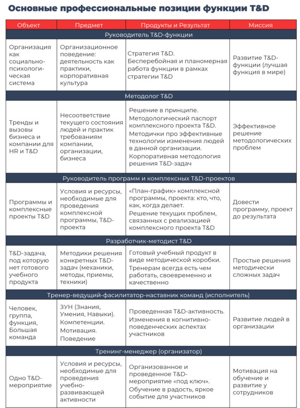 3. Организация и реализация T&D-мероприятий и курирование T&D-проектов в рамках трех систем: учебный центр, корпоративный университет, профессиональное сообщество.