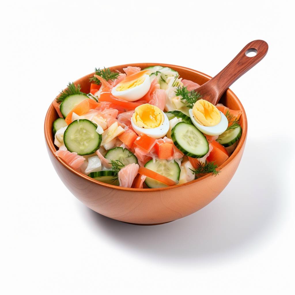 4. Благоприятное сочетание белков и углеводов:* Салат может содержать белки из мяса или других источников белка, а также углеводы из овощей и карбогидратов. Это создает сбалансированный прием пищи.