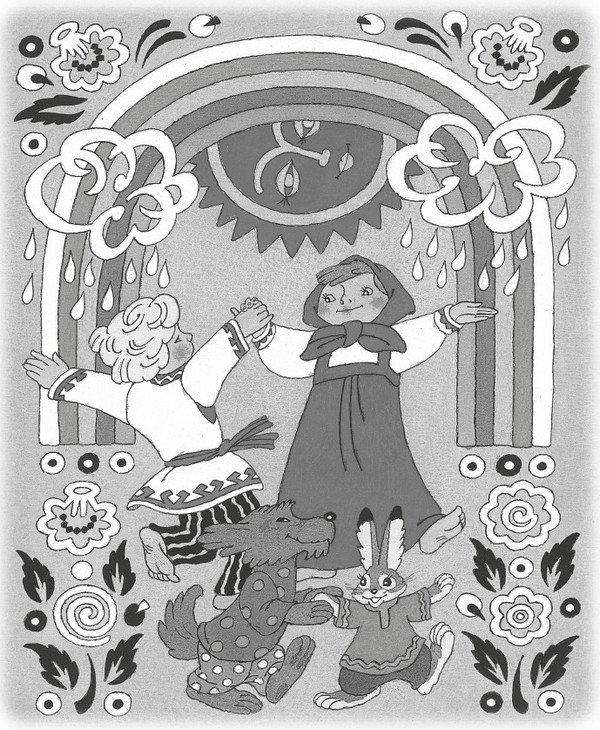 Солнце, дождик, приходите,Детям сказку приводите!А из тучи – гром, громЗагоняет в дом, в дом.Покажись из тучи, солнце,Загляни скорей в оконце,Освети скорей светлицу,Расскажи нам небылицу.Прятки