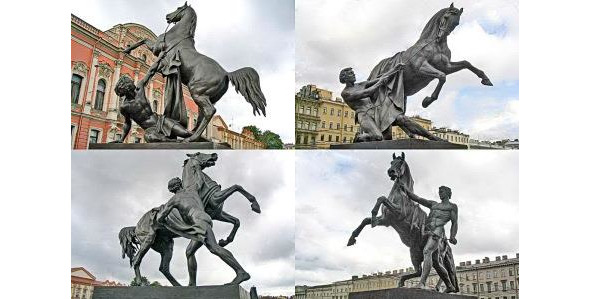 Рукой волшебной вознесённый, он встал над невскою водой, и мощь коней обожествлённых летит, спасая мир земной. В них время радости и счастья, под гнётом страсти роковой, стремленье обуздать ненастье могучей твёрдою рукой. Они таят секрет ваянья, что мастер миру подарил, из чувства мести и страданья за чудо, что он сотворил.Творение
