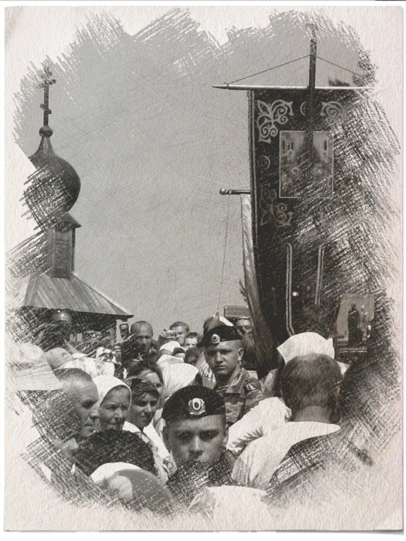 Помню, как несколько лет назад в день проводов крестного хода ко мне подошел мужчина в одежде паломника с фотоаппаратом в руках. Мы оба ждали тот волнующий момент, когда крестный ход, повернув на улицу Казанскую, начнет подниматься к Спасскому собору. Снимок обещал быть удачным. Ярко светило солнце, и вообще погода была на редкость праздничная. Видимо, от избытка чувств мужчина обратился ко мне с такими словами: