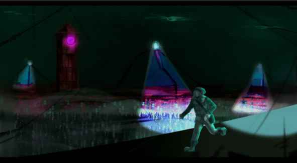 Я повернула голову и увидела, как пара смотрящих уже двинулась в сторону моего дома. Они пытались обнаружить меня прожекторами издалека. Если я сейчас же не убегу отсюда, меня поймают. Я побежала по крышам в противоположную от света сторону. Я удивлялась тому, что в моих легких все еще оставался воздух и что я вообще могла бежать. Свет приближался, но я оказалась быстрее и продолжала бежать. Я бежала в сторону своего завода и надеялась переночевать в своем убежище. Я топала по крышам очень звонко.
