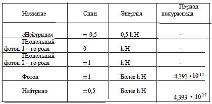 Классификация элементарных частиц с нулевой массой покоя в сингулярной точке (по А.Г. Шлёнову [5]):
