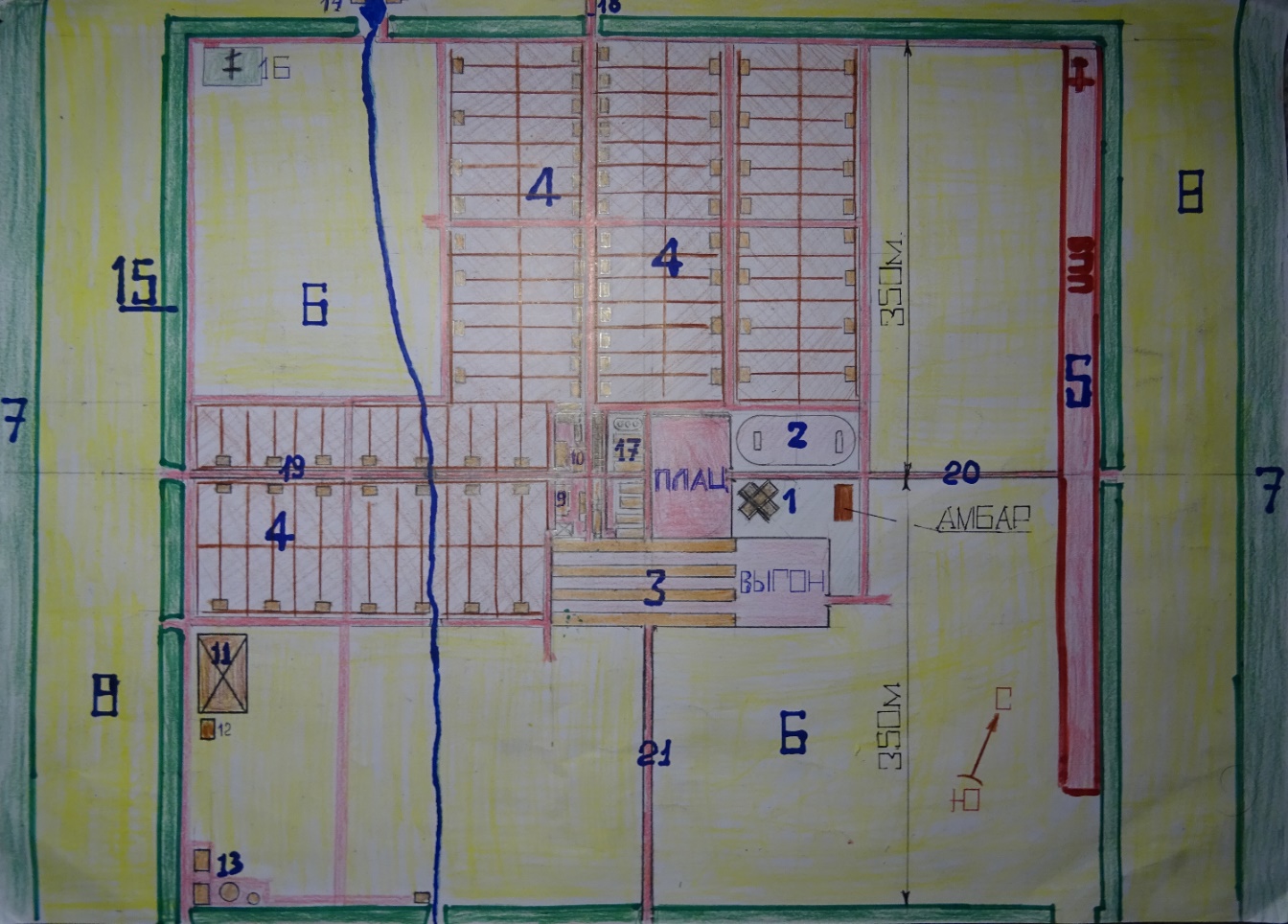 Маргелово. Сентябрь 1238 год. На схеме обозначены цифрами: 1-Учебный корпус. 2- Стадион. 3- Конюшни. 4- Земельные участки по 10 соток с избами. 5-Взлётно посадочная полоса. 6- Пашня. 7- Лесной массив. 8- Стометровая полоса пахотных земель по периметру посёлка. 9- Клуб. 10- Столовая. 11- Склад пиломатериалов. 12- лесопилка. 13 –Нефтехранилище. 14 – Плотина с мельницей.15-Защитная лесополоса шириной 10-12 метров. 16-Кладбище. 17- Склады и казармы. 18- Улица Переяславльская. 19- Улица Борисоглебская. 20- Улица Рязанская. 21- Улица Пронская.