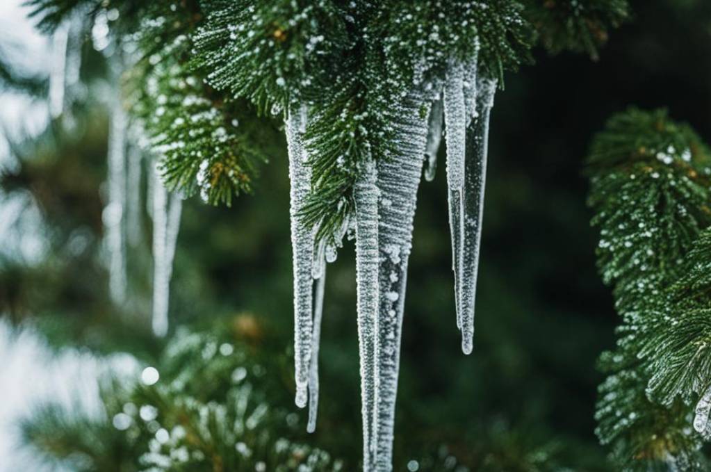 Хоть зима еще и не закончилась, солнышко припекало по-весеннему. Гусеничка Маня только-только проснулась, посмотрела вверх и ахнула. На макушке елки небывалой величины сосулька!