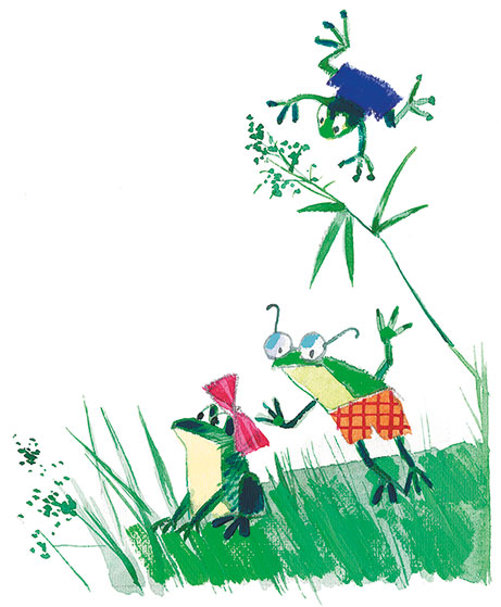 Алла Потаповна всплеснула руками и побежала звонить доктору Пяткину. А лягушата прыгали парами и хором пели песню «В траве сидел кузнечик».